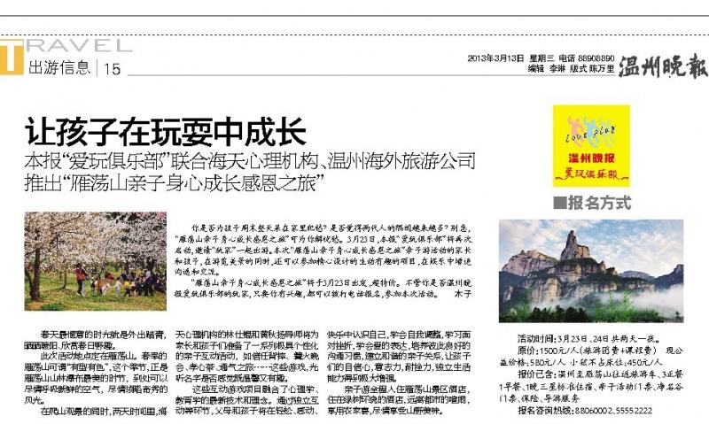 温州晚报联合海天心理组织亲子游学